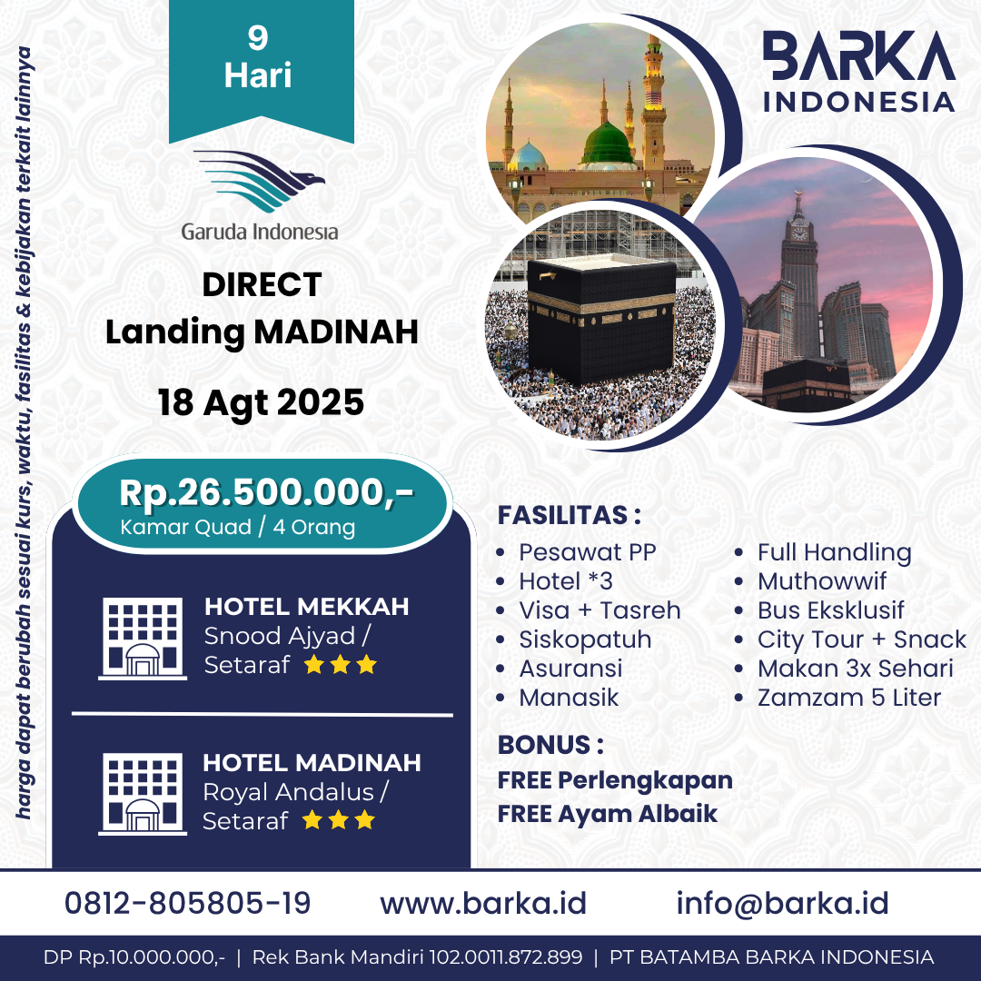 Dengan menyediakan berbagai Fasilitas Pelayanan yang Lengkap dan Memuaskan agar Perjalanan Anda terasa Khusyu, Nyaman dan Menyenangkan.